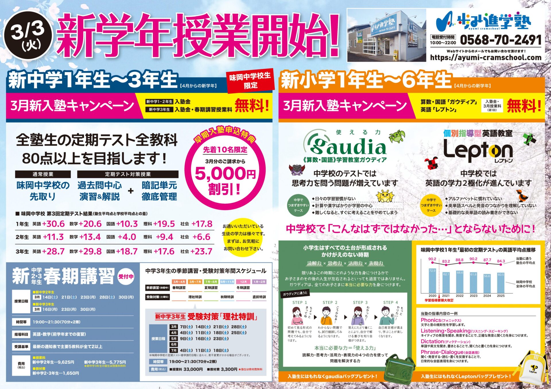 3月からのご入塾をお申込される新中学1年生~新中学3年生(2026年4月からの学年)